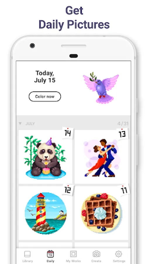 Designed by gaming experts and loved by players worldwide, Pixel Art coloring games help you dive into a world of coloring meditation. Choose from a wide range of fascinating artworks and paint by number while having fun!