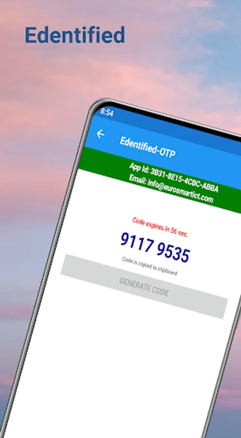 Once activated, a cryptographic device key is generated and stored securely in your edentified app. This key is used to generate the OTP or to perform QR authentication.