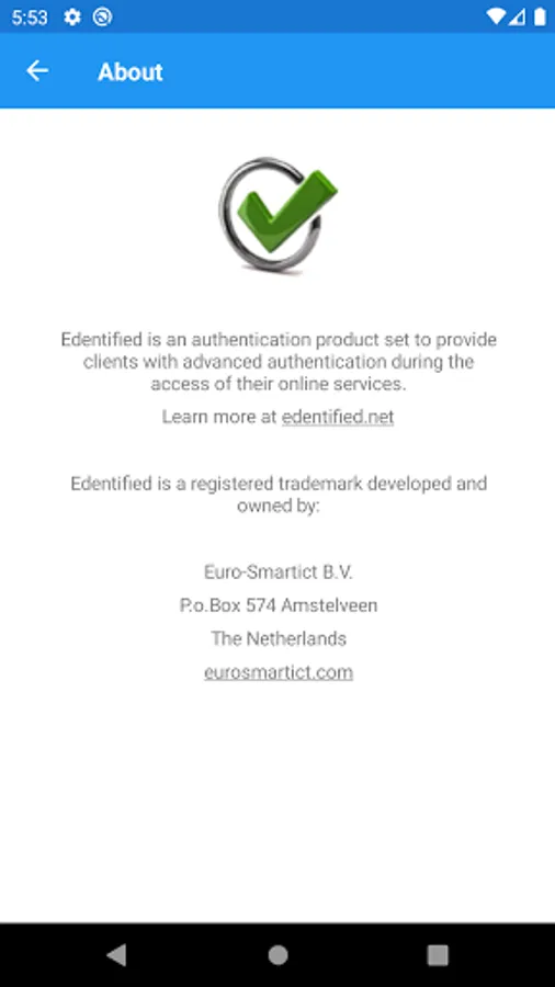 Edentified also supports QR code authentication where you can sign in by simply scanning a qr-code presented on the online account screen and edentified takes care of the rest.