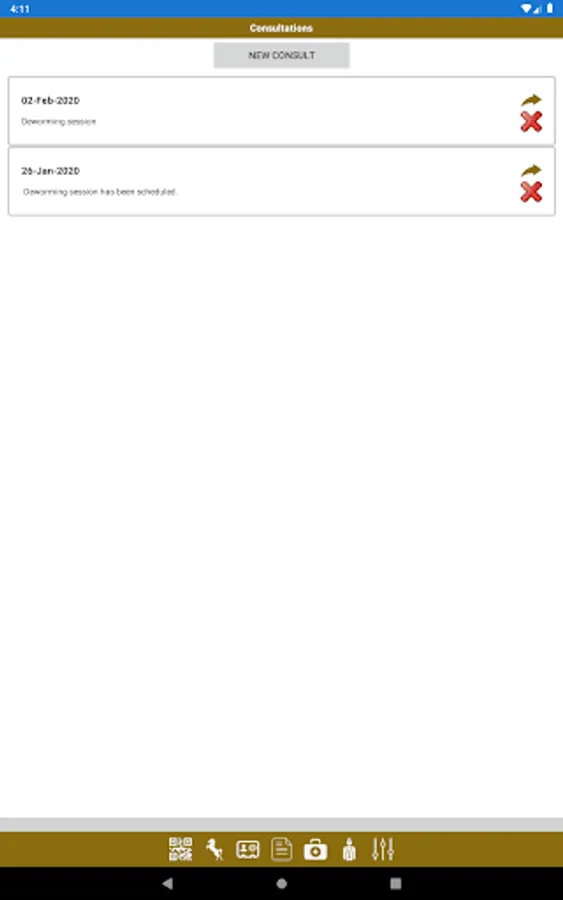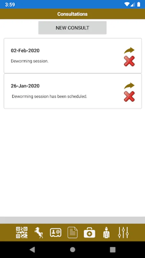 After activating the Horse Medic app and having access granted to a horse dossier, veterinarians are able to view the dossier and maintain the medical details, vaccinations and consults history.