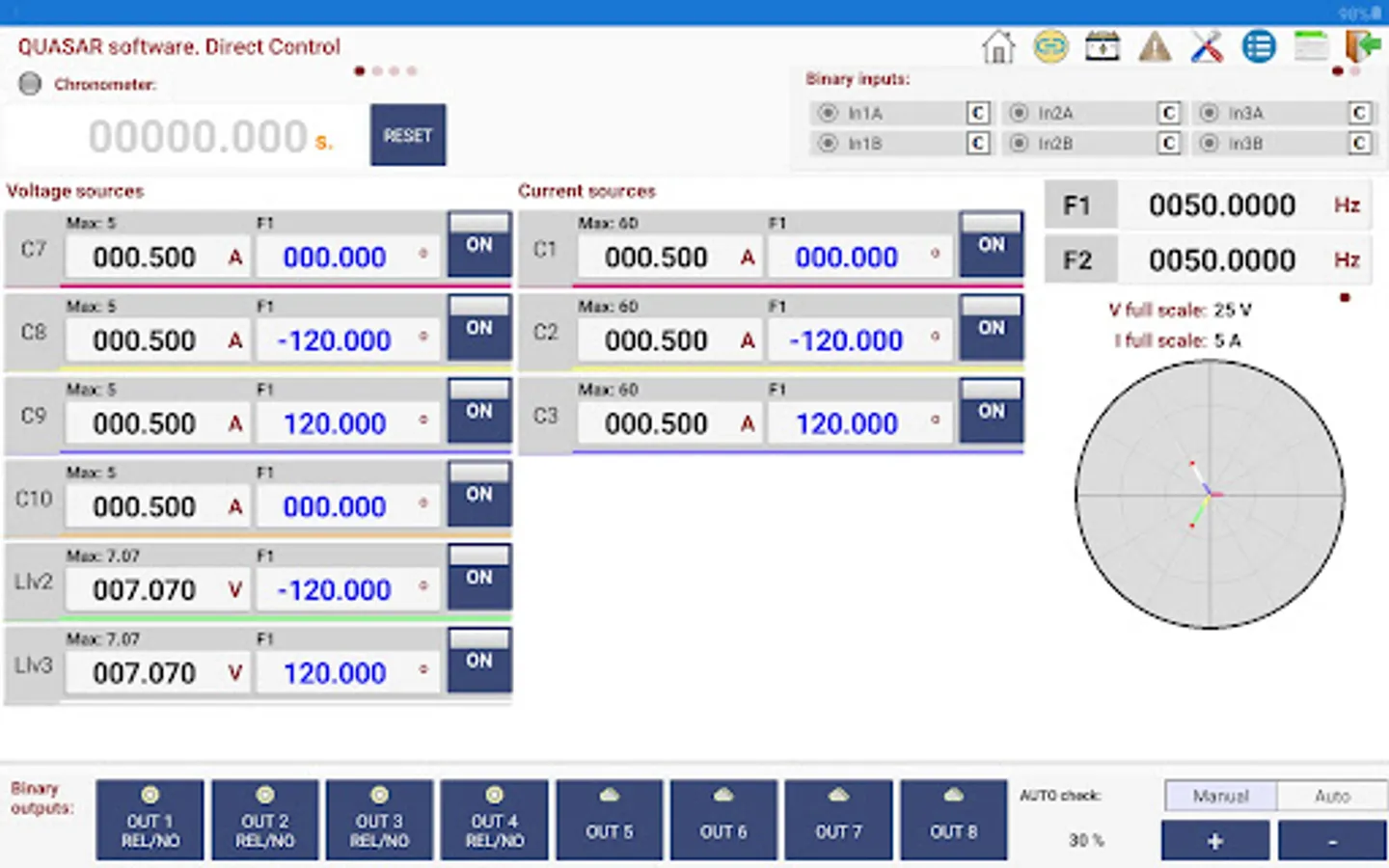 The Quasar is a three-phase protective relay test set especially designed for advanced industrial and routine maintenance applications. This app enables the easy and accurate control of the Quasar, and the execution of pre-configured test routines from your tablet when testing protections of any type in secondary, as well as IEC-61850 compliant protective IEDs.