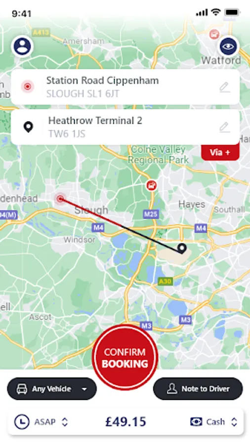 This APP has been designed to be used for journeys starting within a 10 mile radius of Burnham Station. Use this APP to book journeys starting within this area, “Out Of Bounds” or “Call Office” will require a quick phone call to our awaiting office staff.
