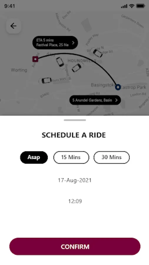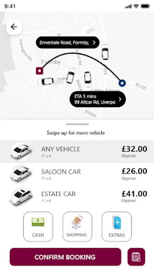 You can place the booking directly on our map, and see how many available cars there are nearby.
