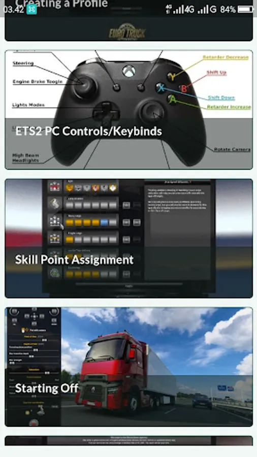 In this application we provide a guide for successfully playing the game euro truck simulator 2 from start to finish. This guide can be used for both beginners and advanced users. Here is a list of tutorials that you must master in order to play the euro truck simulator 2 game well.