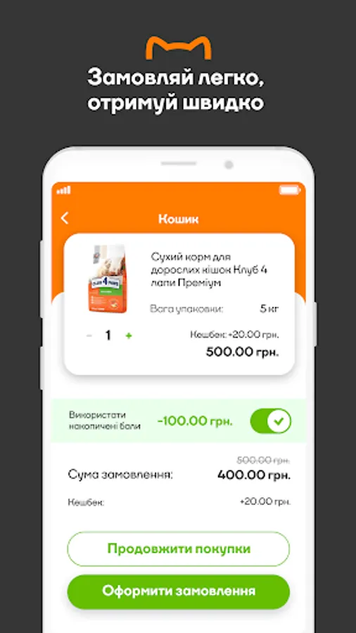 Your pet was delighted with the treats, but you forgot what they were called - no problem, because the order history is saved in the application, you can always see what you ordered last time and add any product to the basket again.