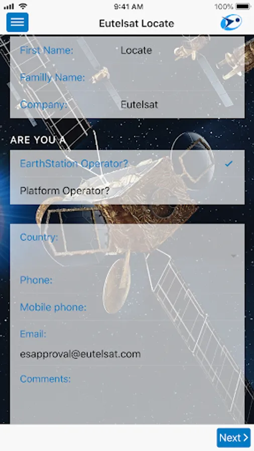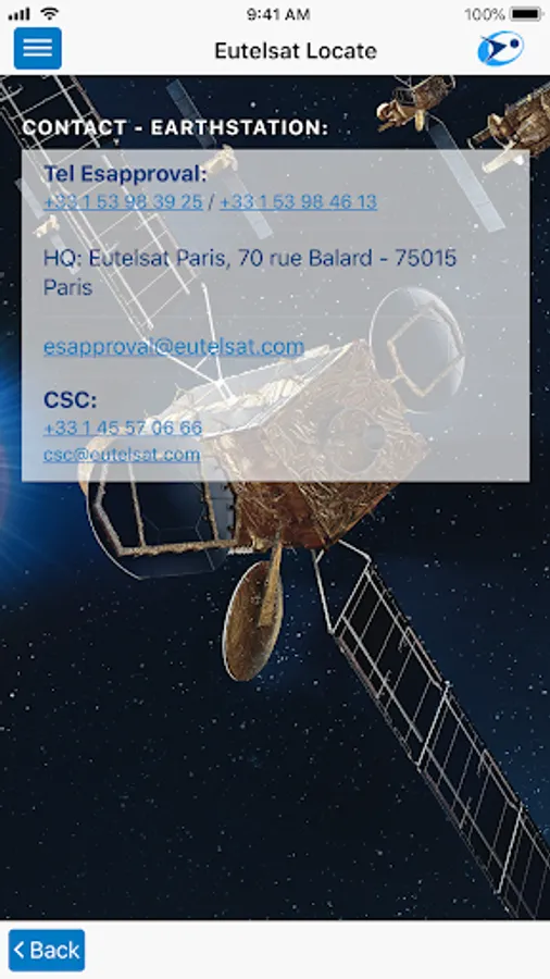 Eutelsat Locate enables satellite installers and operators installing Eutelsat services to send a message confirming the installation to the relevant Eutelsat team.