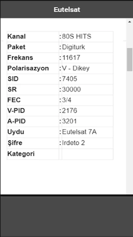 Frequency information of television and radio channels broadcast on Eutelsat satellite is included. There are all channels that can broadcast HD and SD.
