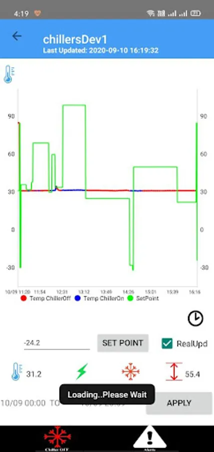 Everest chiller application used to Monitoring current temperature as well as temperature deviation from set Temperature of the chillers. We could control chiller with this application, we could OFF/ON the chiller and give the set Temperature as per our requirement. we could fetch the history data and see the variation and deviation of temperature to the corresponding data as well as time. we will get alerts when temperature get deviated from the set temperature.