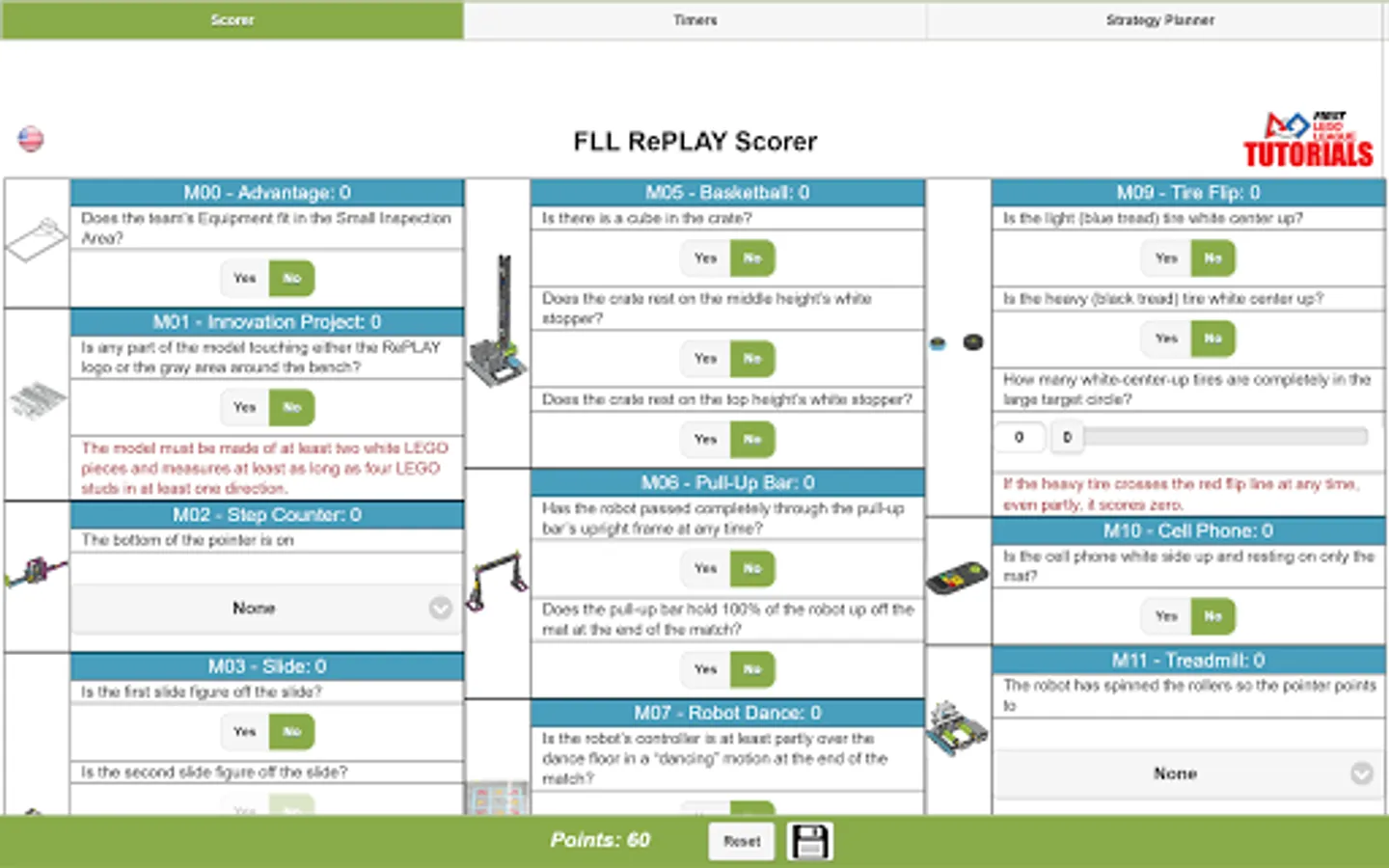 This is a reliable tool created annually by the Seshan Brothers for FIRST teams. As World Champion's and EV3Lessons, PrimeLessons and FLLTutorials, they know the importance of having accurate scoring tools. They have 5 years of experience creating a scoring app for teams.