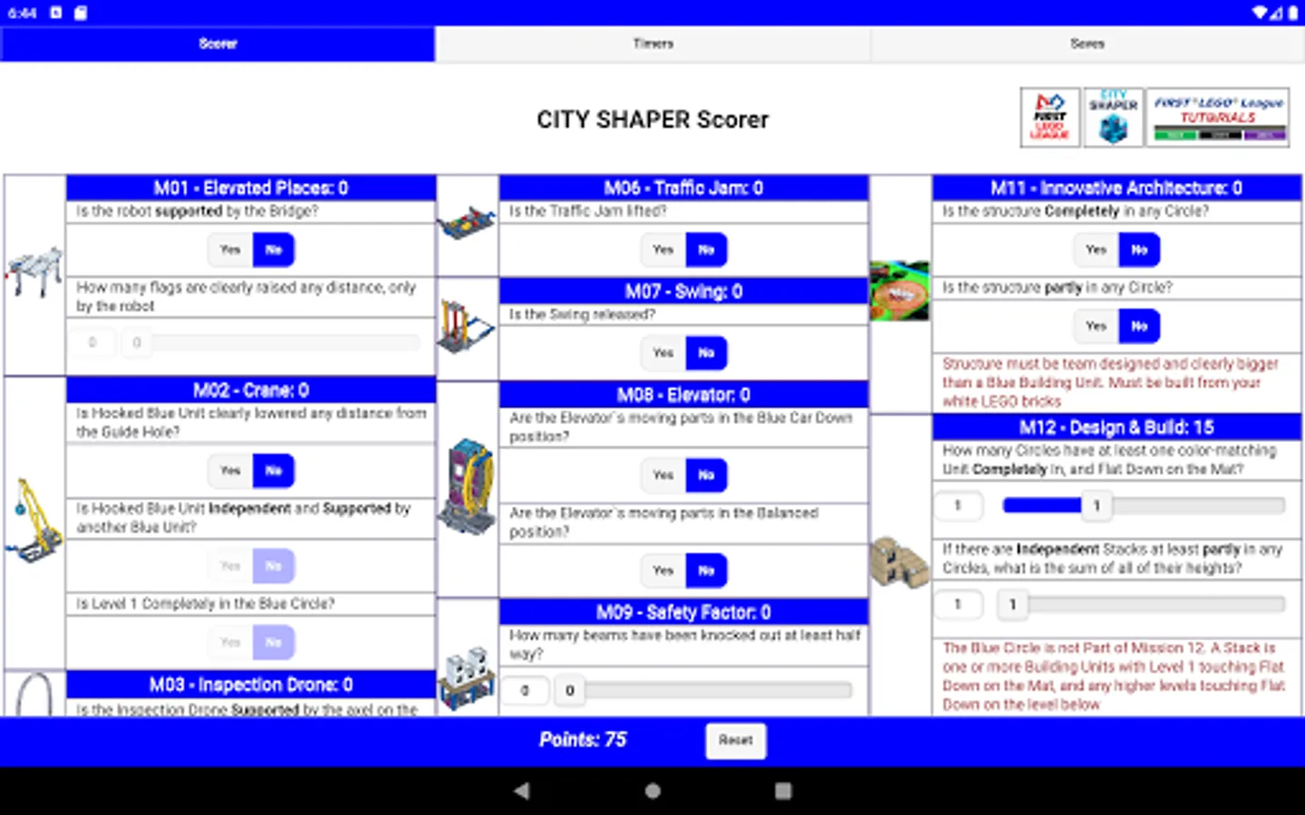 You can use this tool to score your FLL CITY SHAPER robot throughout the season.