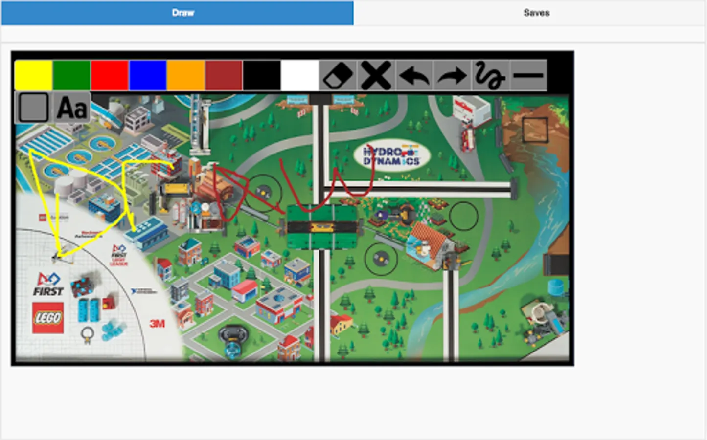 Use the Hydro Dynamics Sketch Planner to plan your robot runs. You can draw your path across a virtual FLL table where you want your robot to drive. This tool comes with the ability to save your drawing, so you can try different plans before you come up with a final plan.