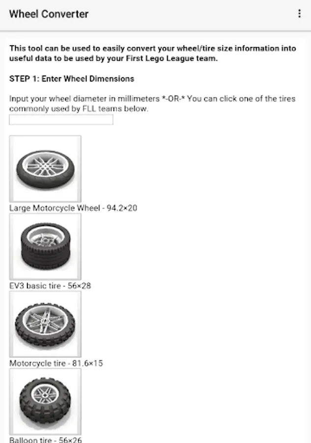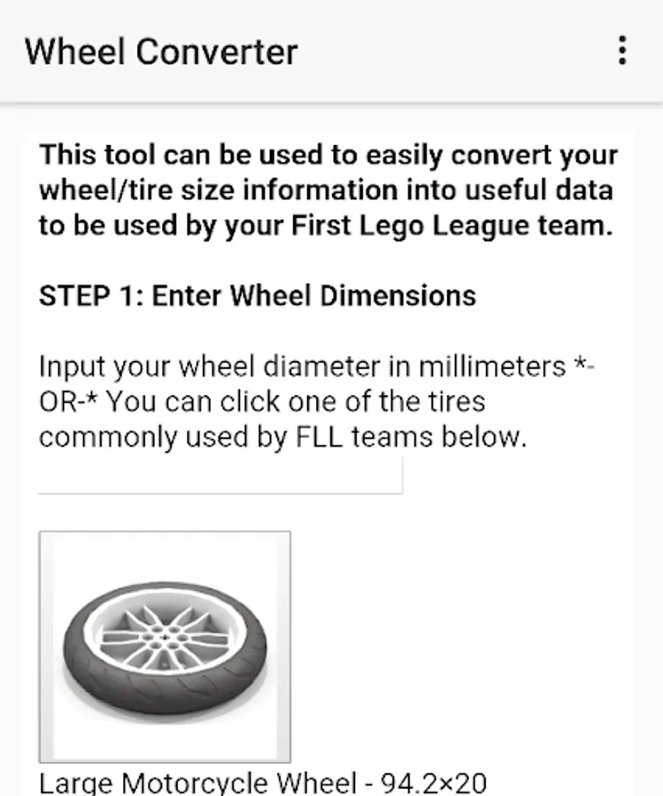 You can use our wheel converter to convert centimeters/inches to degrees/rotations. Use this during your FLL Trash Trek season.