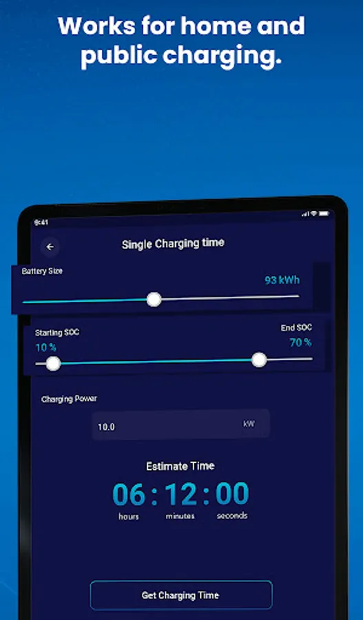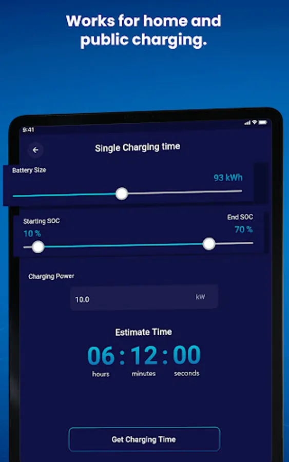 Download our EV Charging Time Calculator to calculate how long you should charge your car at a charging point or at home. If you have an electric car, this is the perfect app for you. No matter what electric vehicle you have and what type of car battery charger you use, from Tesla supercharger (a powerful Tesla charging station), chargehub, chargepoint, or any charger at home. This smart charge time calculator will make your life much easier!