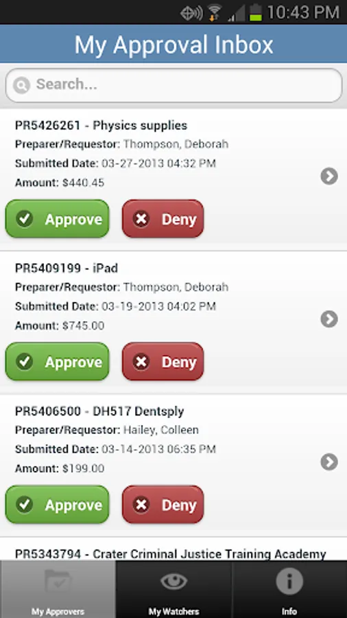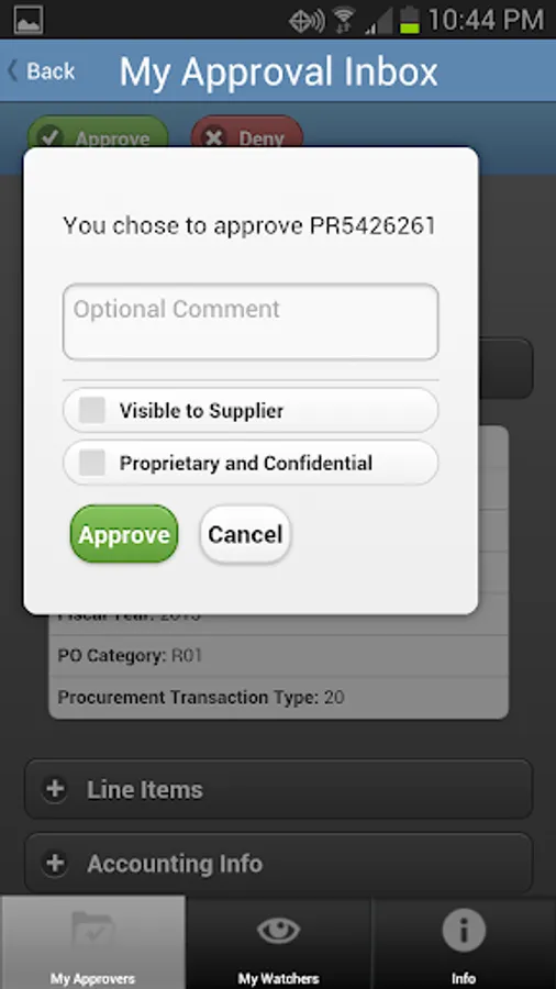 These Requisitions can be approved or denied and the user can choose to add an optional comment.