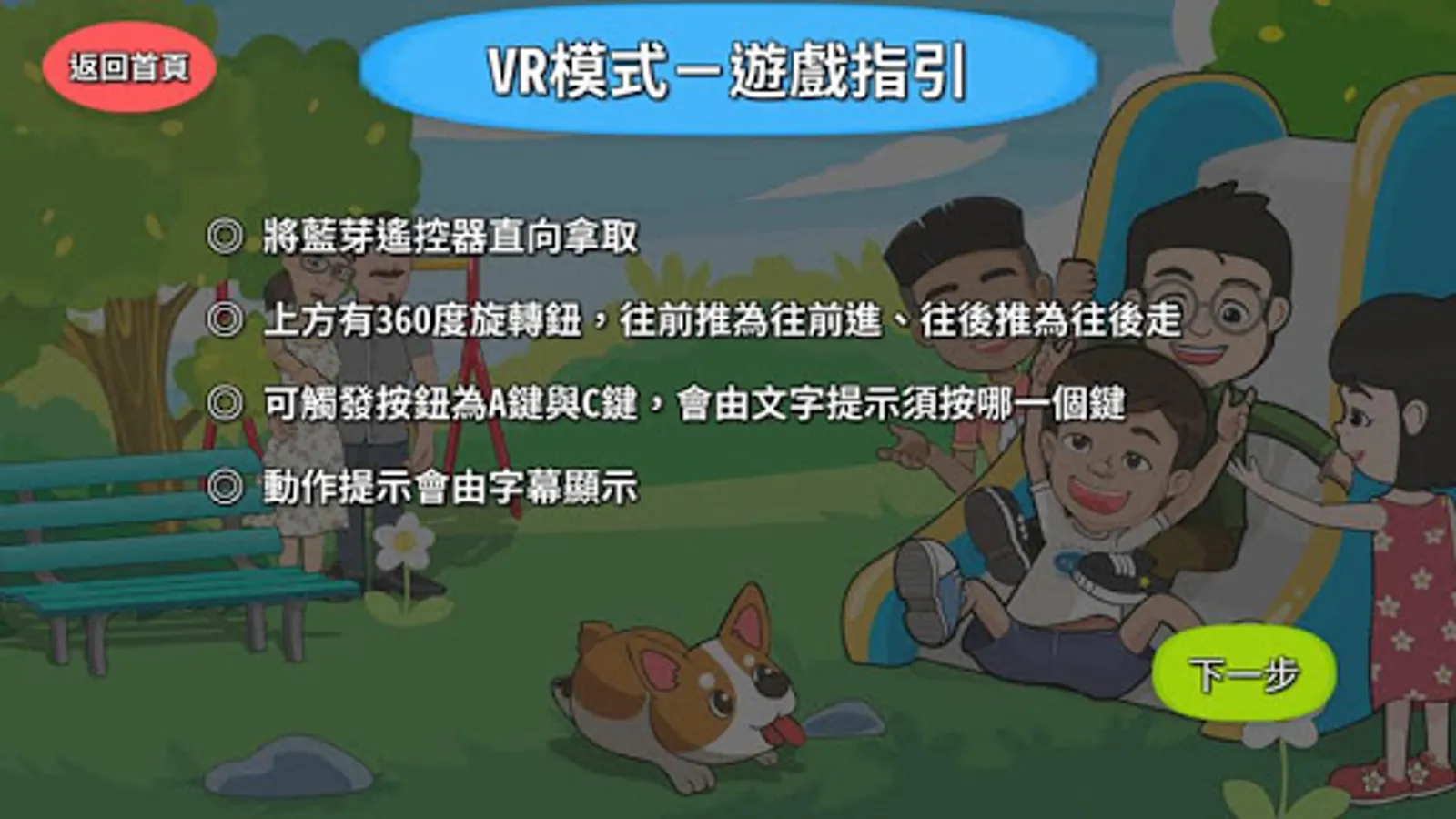 3. 選擇完角色,會進入「舒適度警語」,告知玩家VR體驗的相關提醒和遊戲操作。
