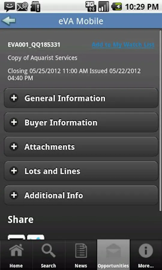 - eVA Registered Vendors can designate solicitations to a ‘Watch’ list and then follow them while on the go, just as they would at the office.