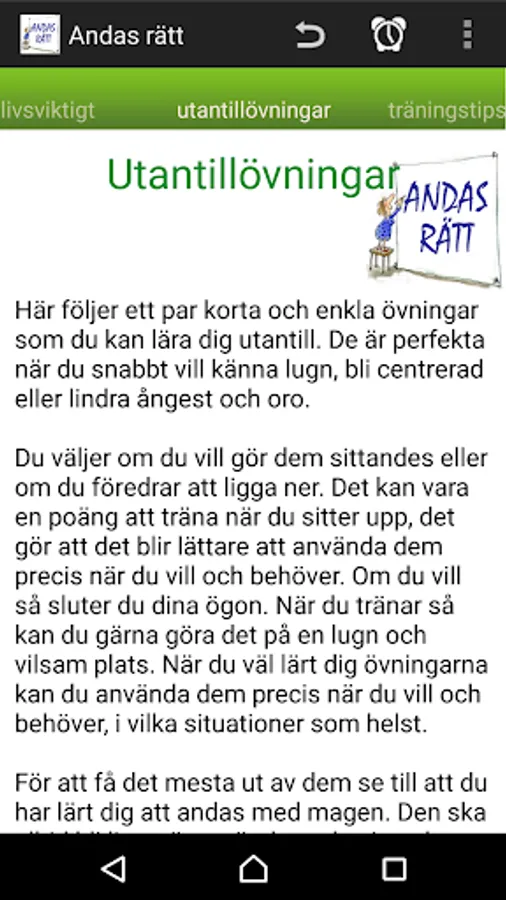 The app contains a number of different breathing exercises, both audio and visual. You can find out your respiratory rate and learn to breathe correctly. All to help you find back to a proper breathing pattern.
