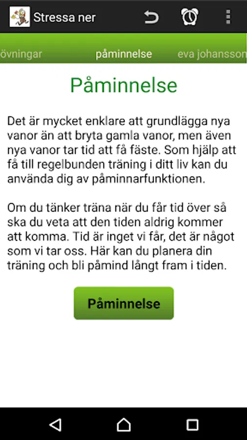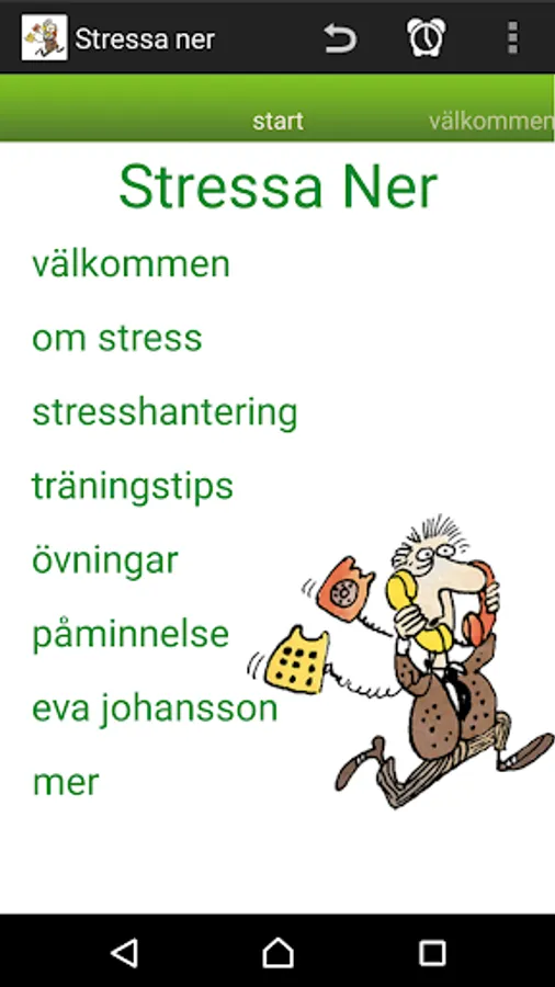 Stressa ner is included in a series of apps made and recorded by Eva Johansson who usually get feedback on having one of Sweden's most beautiful relaxation votes.