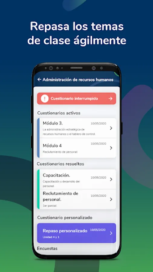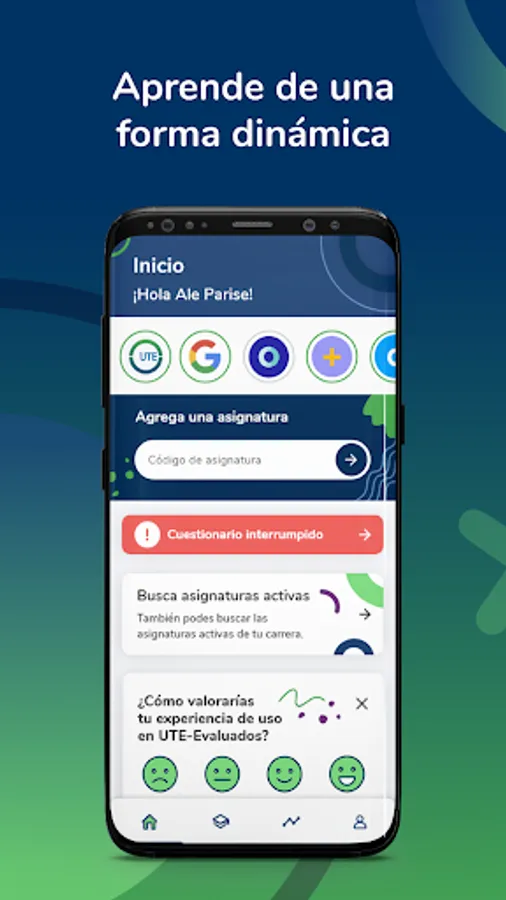 UTE Evaluados allows you to answer questionnaires to check what you have learned in a self-assessment format with the complement of knowing how your performance is in relation to that of your peers