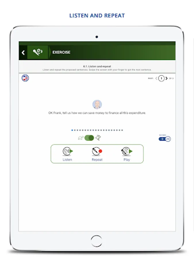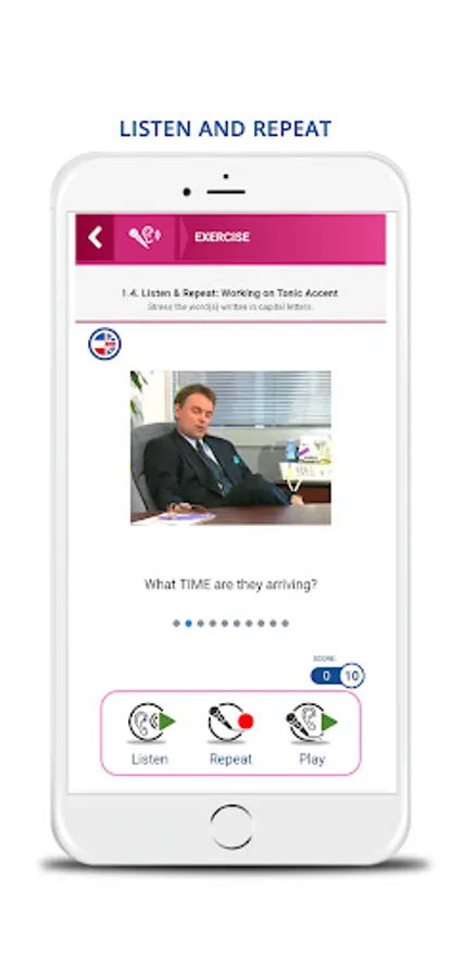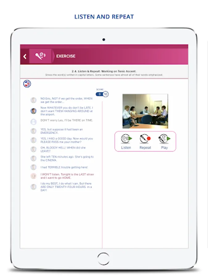 The Dialog & listening module to work on comprehension and pronunciation: