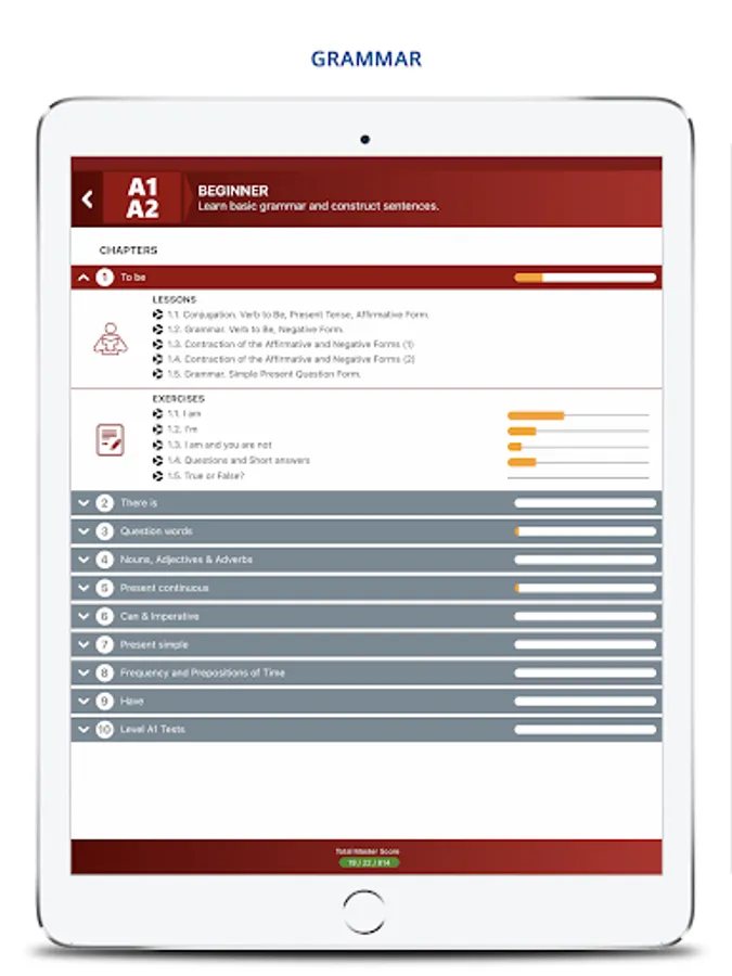 The Grammar challenge module to work on grammar by level and by topic with corrected exercises: