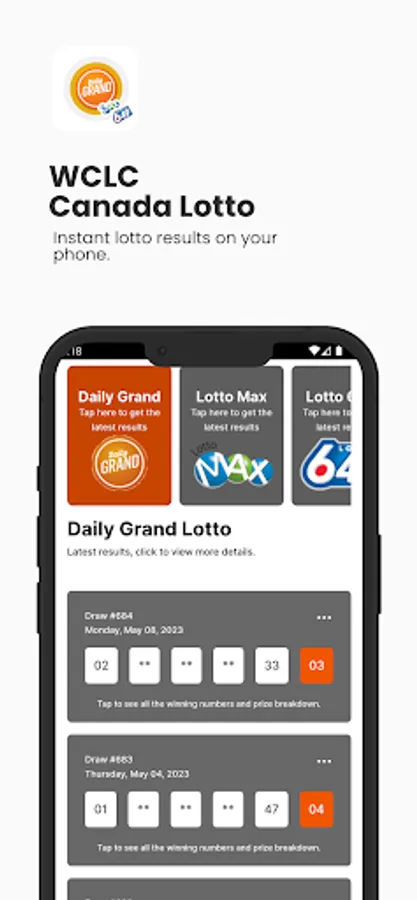 Welcome to WCLC Grand Lotto - Canada, the ultimate lottery app for Canadians who love to play and win big! This app is for Canada and provides you with the latest lotto results and winning numbers, along with all the information you need to stay on top of your game.