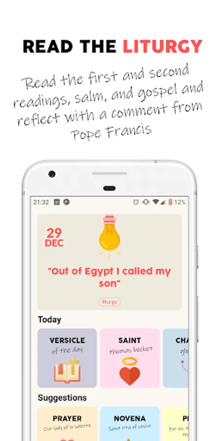 Do not run the risk of forgetting to pray. Set daily reminders, at your preferred time, for reading the liturgy and for the days following the beginning of a novena.