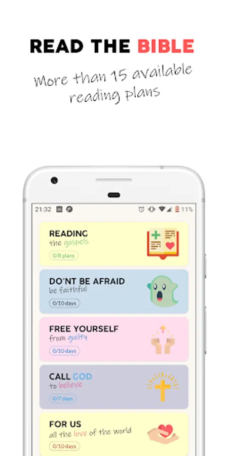 Read the Bible in parts. Through daily plans, meditate on the word of God according to the moment you are living, or read the whole story of the life of Jesus told in the four Gospels.