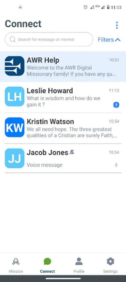 This app is an important part of that mission. It uses a powerful, easy-to-use chat experience to connect mission-minded Seventh-day Adventist laypeople to those who are seeking Jesus—building friendships for eternity.