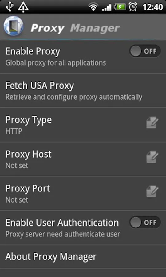 Access to unlimited network with proxy on Android phones. Proxy Manager is a simple but powerful tool to let you set proxy on phones and access network with it. And it's ad-free.