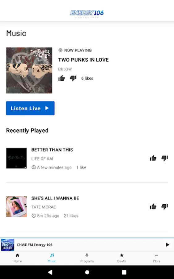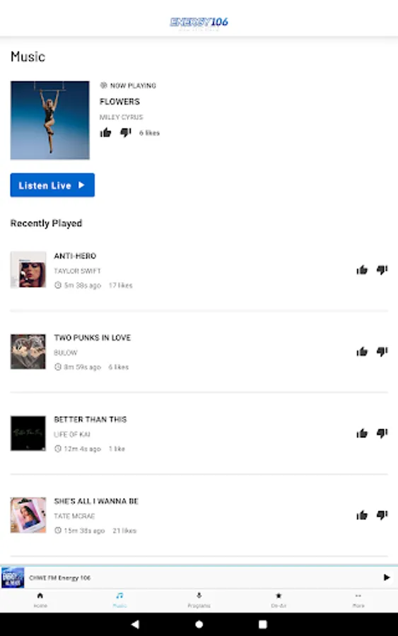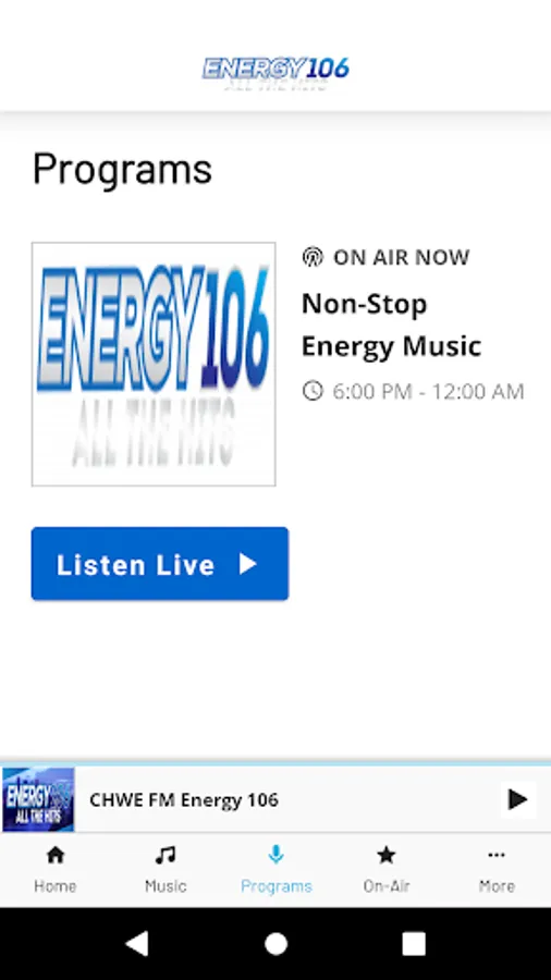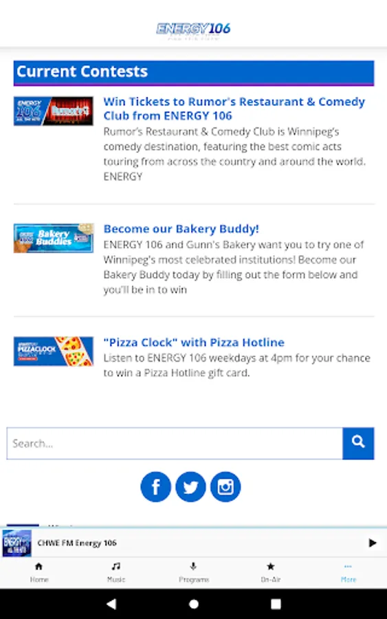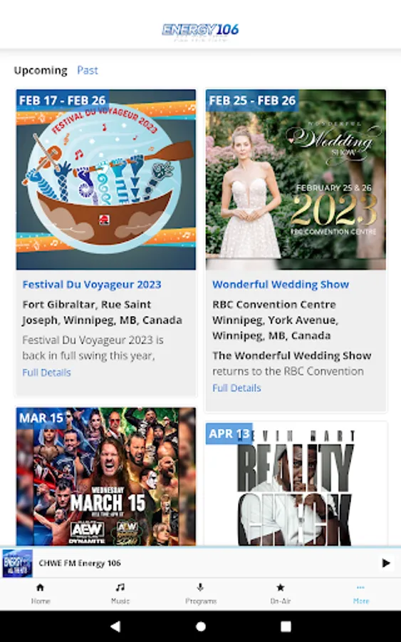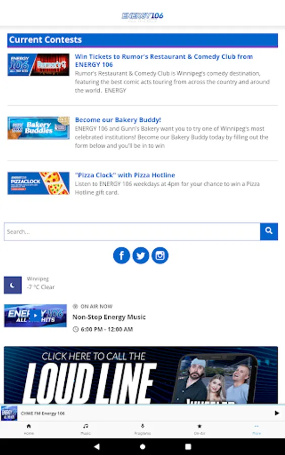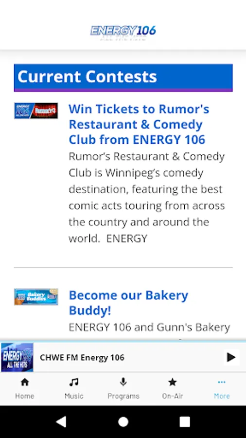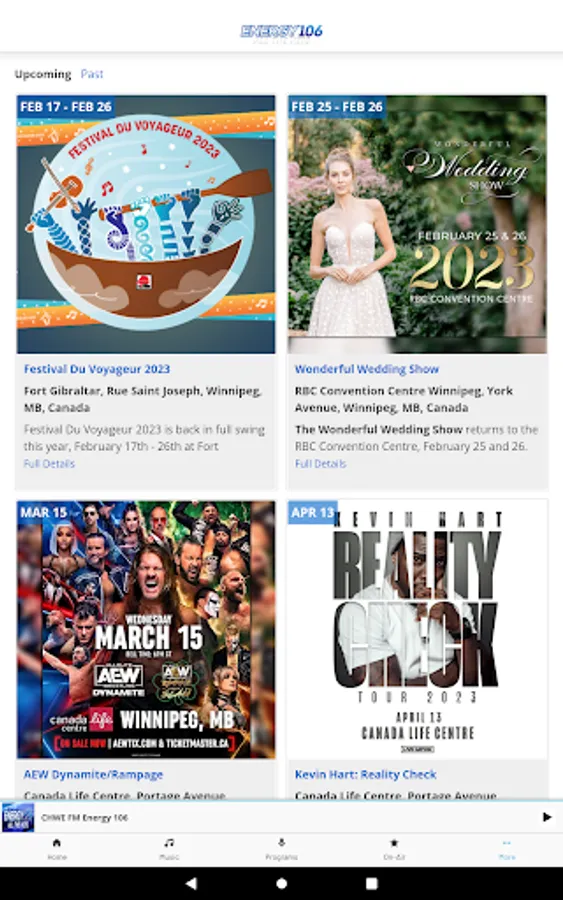 Energy 106 is Winnipeg's #1 Source for Top 40 and Dance Music. If it's upbeat, fun and entertainment you are looking for, then Energy 106 has it all! Energy 106 serves up the best selections from EDM, Top 40, Urban and Waybacks! We feature your favorite artists like Shawn Mendes, Cardi B, Rihanna, Marshmello, Tiesto, Calvin Harris, Drake and many more!
