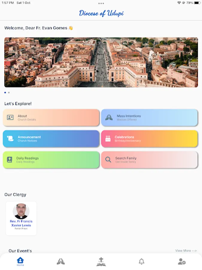 This Mobile Application is a comprehensive tool for the Parishioners of Udupi Diocese to interact with the Parish they Belong. Through this App the parishioners get daily updates on their mobile.