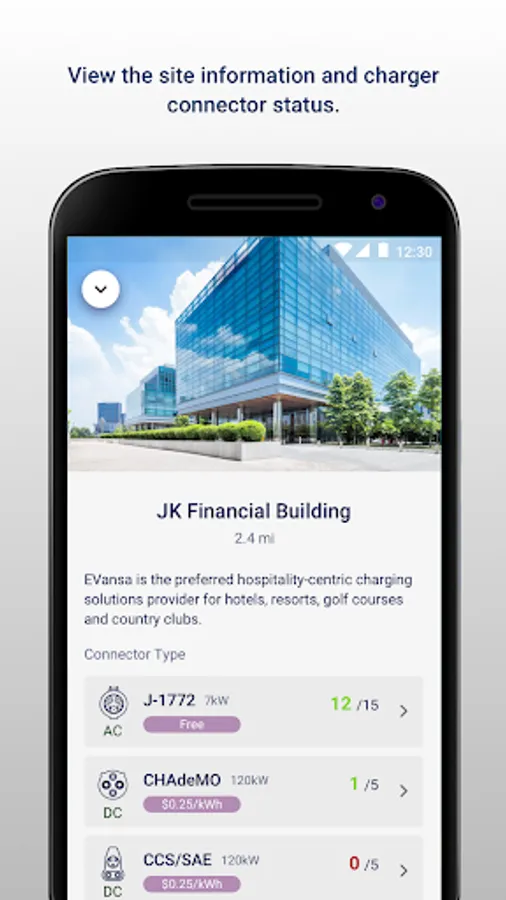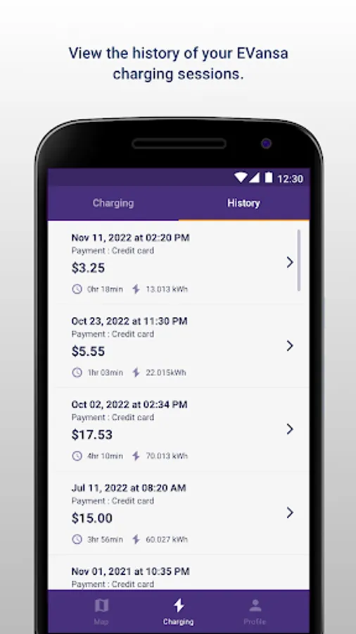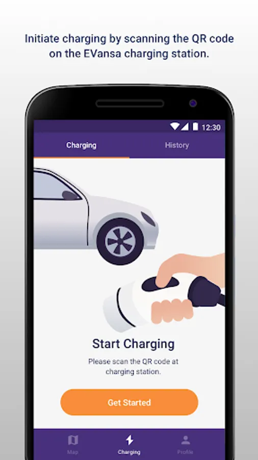 Evansa app lets you easily initiate charging at Evansa EV charging stations by scanning the QR code shown on the station. The app will display clear instructions so you can start charging. When charging is completed, you will receive a notification on your phone.