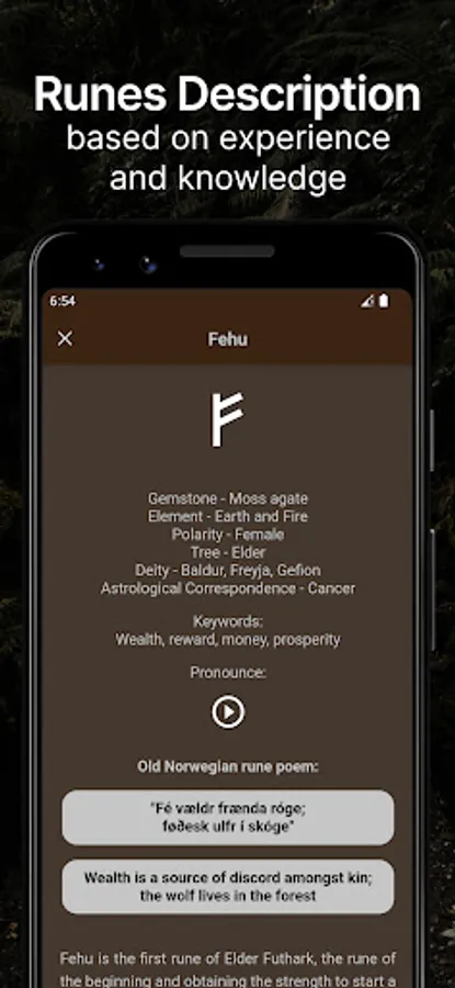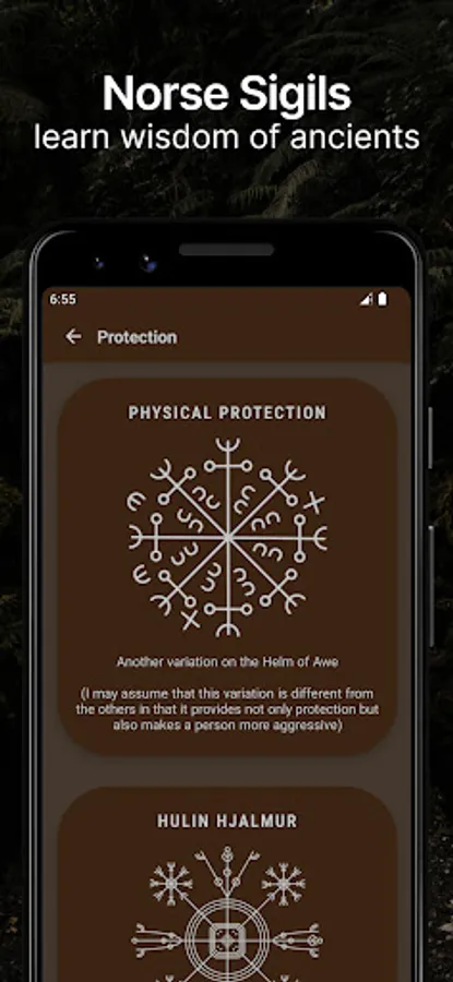The app is designed to help beginners learn ancient Norse magic. It will open a door for understanding people of those times because magic was a part of their life. Vikings carved symbols on their ships and draw them on their bodies. They believed that this would protect them from the storm at sea and protect them from the enemy's ax.