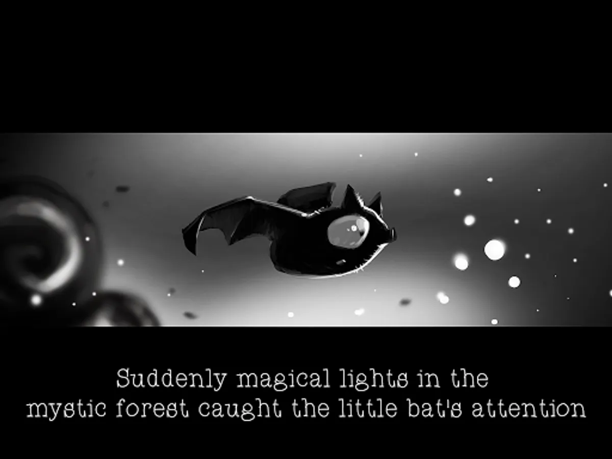 Suddenly magical lights in the mystic forest caught the little bat's attention.