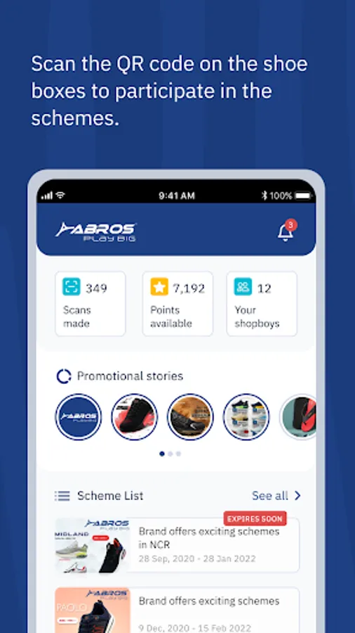 Download the app and enter your phone number for registration or registered retailer mobile number with Abros Partner App Scan the barcodes on the products and earn points to participate in the promotions scheme