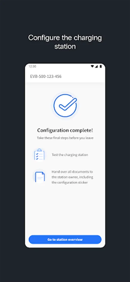 All the steps to successfully complete a configuration are explained inside the app. Need help with installing the station? Consult the charging station's installation manual.