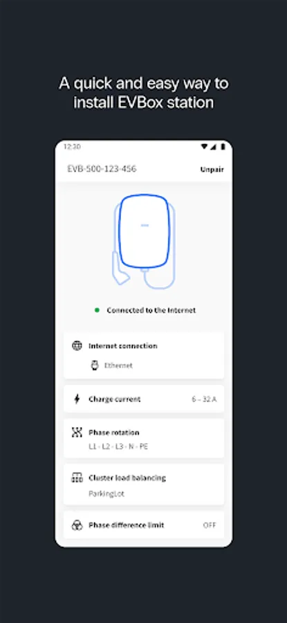 EVBox Install is designed for installers. Only with EVBox Install can installers configure charging stations and make their functions available, such as: