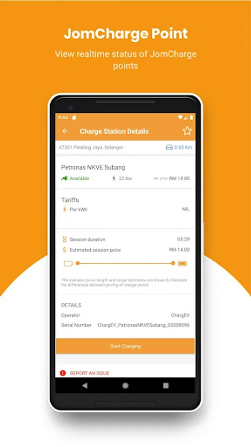 With the JomCharge app, users are able to locate nearby EV chargers, see realtime status of the chargers*, start/stop a charging session and make payment for charging session.
