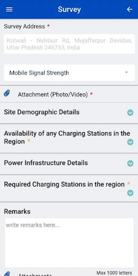 The users through the app will notify interest to set up EV Charging Stations by filling a 10 minute survey form, which upon submission will be evaluated by EESL to deploy Charging Stations.