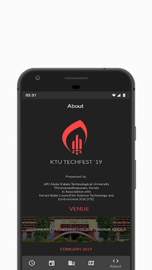 KTU Techfest 2019 is the annual technological extravaganza jointly organised by Dr. APJ Abdul Kalam Technological University and Kerala State Council for Science Technology and Environment (KSCSTE). Government Engineering College Thrissur is the proud host of this technical treat. Government Engineering College Thrissur has been a pioneering educational institute for over 60 years. It boasts of students who have achieved excellence in the field of academics and organisation.