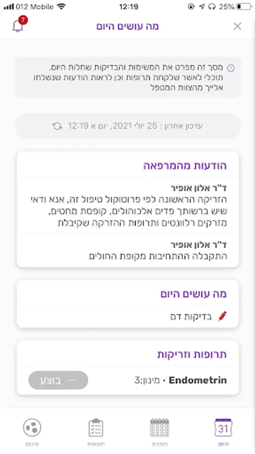 All information displayed is real-time information that includes alerts for any updates and changes to the program. Using the app will help you to be updated at any given moment on the details of the treatment and in the time I will make sure that you have done everything required correctly and on time.