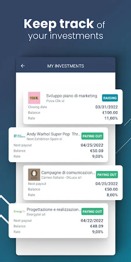 - You can monitor your portfolio and the performance of your investments directly from your smartphone