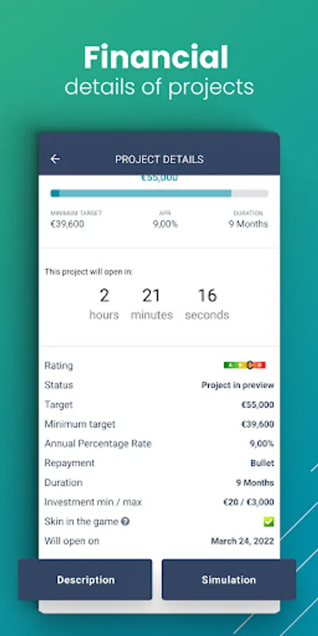 Through the app you will have full platform access, with the ability to invest directly in our projects.
