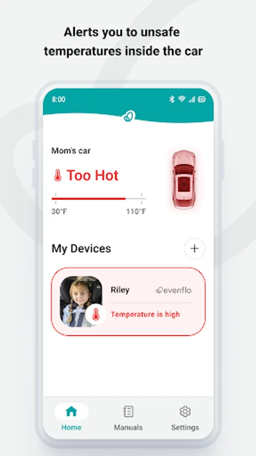 2. TEMPERATURE TOO HOT or TOO COLD alerts caregivers if a child is in a vehicle at an unsafe ambient temperature.