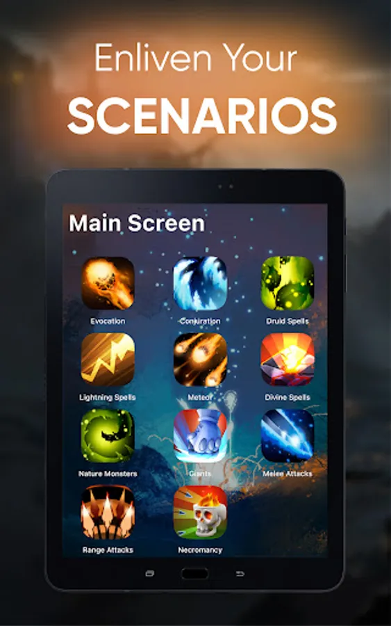 • Roll your own dice and swiftly play the appropriate sound scenario OR use the in-app auto dice roller