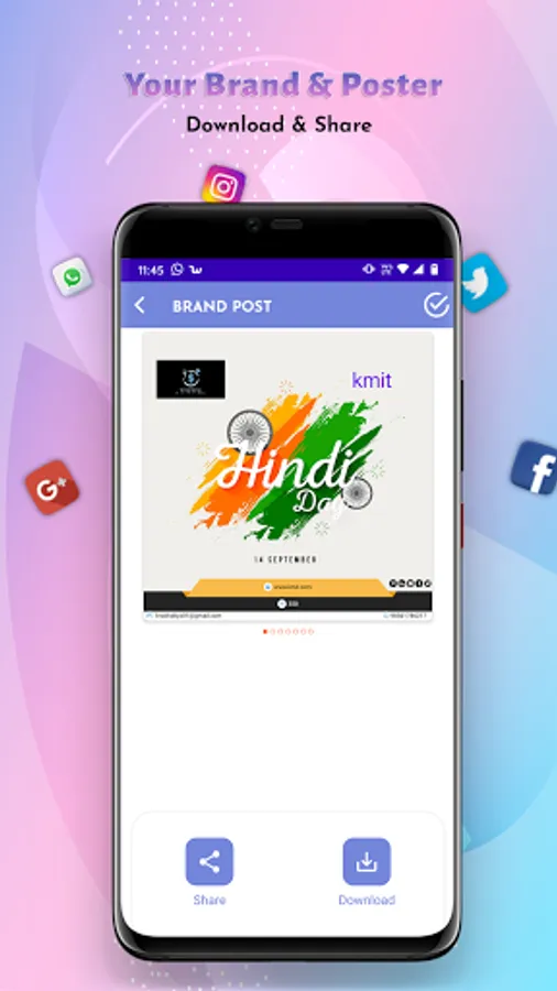 Brand Post Create a Post, Story, or Status for your Brand or Company, or Business We will add daily festival images in our app so all business or company can promote their business with the festival images on social media 365 days.