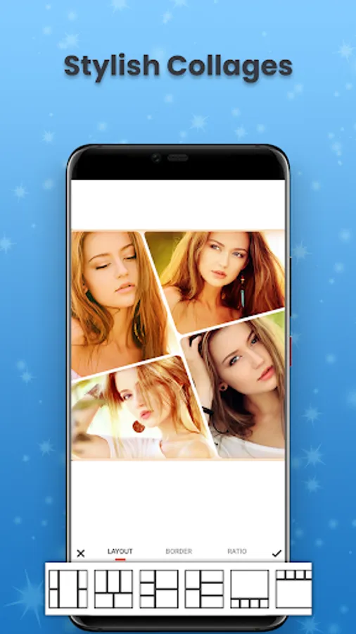 Crazy photo editor is the best collage maker with professional editing tools. Photo Collage helps you combine multiple photos with various frame patterns and photo grids, apply many photo filters and collage photos, stickers to your custom photos. Display image then share them at a time.