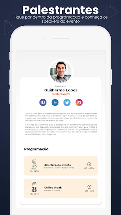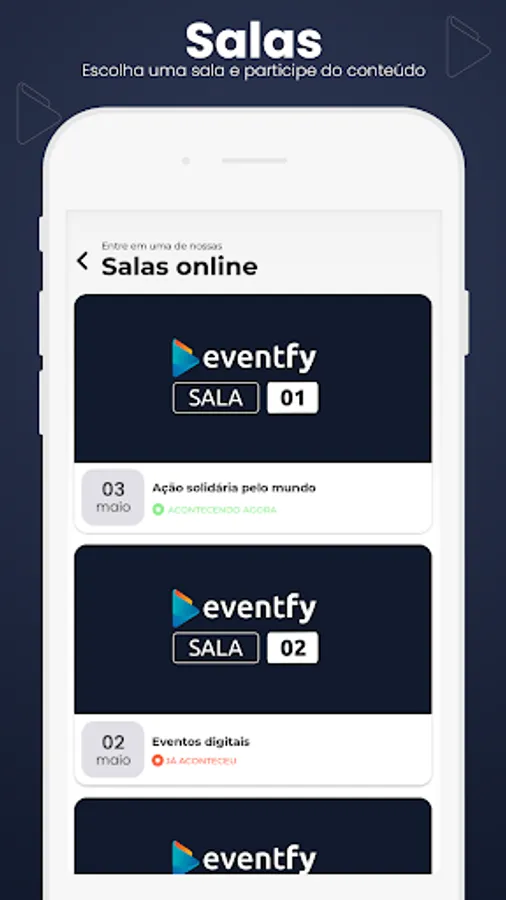 Eventfy provides a personalized virtual environment for lectures, conventions, congresses, get-togethers, fairs, webinars and launches. Our platform is ideal for companies and professionals who need to carry out corporate events in a personalized way in order to promote a greater experience for the participants.