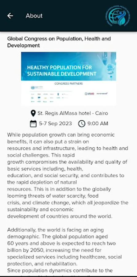 While population growth can bring economic benefits, it can also put a strain on resources and infrastructure, leading to health and social challenges. This rapid growth compromises the availability and quality of basic services including, health, education, and social security, and contributes to the rapid depletion of natural resources. This is in addition to the globally looming threats of water scarcity, food crisis, and climate change, which all jeopardize the sustainability and economic development of countries around the world. Additionally, the world is facing an aging demographic. The global population aged 60 years and above is expected to reach two billion by 2050, increasing the need for specialized services including healthcare, social protection, and rehabilitation. Since population dynamics contribute to the complexity of bringing health to all, health systems must respond actively to changes taking place in the growth, structure, and distribution of the world's population. This requires leveraging the role of primary healthcare as well as adopting innovative measures to face this challenge. The global burden of disease is also shifting, with a growing burden of non-communicable diseases such as cardiovascular disease, cancer, as well as mental health disorders, which are becoming a major global health issue, with depression and anxiety affecting millions of people worldwide. There is also a need to improve sexual and reproductive health, with many countries still struggling to provide adequate access to contraception and maternal healthcare.
